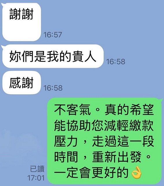 真的很欣慰能夠幫助到這位無助的客戶,拯救了一個家庭。